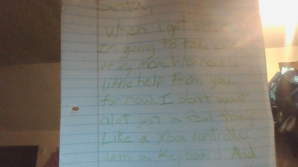 Last year this time I wouldn't have imagined needing help. I was up late on the internet, and I found this site and figured that I would give it a shot. I have Lupus and it has been tough lately so my work hours aren't nearly as they were. This is a really stressful time for me, I do A LOT of worrying. Having to choose between keeping the utilities on and Christmas is emotionally crushing to say the least. My son is 10 and he gives me a reason to smile. He gets good grades, doesn't get into trouble and keeps me proud. His father passed away in March of stomach and prostate Cancer so he has been under the weather off and on but getting better. What a year! He says he is going to become a scientist so he can cure everyone in the world of everything. He is not a picky child at all and would appreciate any gift. It would mean the world if you would help him out this year. I made a list of things he wants and anything from the kindness of your heart is deeply appreciated even your prayers! (sorry for the edits I misplaced my glasses)