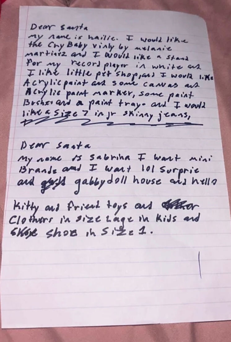 There mother who has them full time refused to work and take advantage of her father who isn’t well from his strokes and there father who only cares for hisself and won’t spend a dime on them unless it’s fishing or hunting stuff and both kids don’t like hunting or fishing they don’t want hunting gear and poles. Last year for Christmas both mother and father wrapped old toys they already had that’s are broken and physical for new born baby’s. Easter they were told Easter bunny forgot about them by both mother and father. And last year Christmas was simple told Santa gives bad kids baby toys. I don’t want this again for them this year it breaks my heart. Also there mother refuses to buy clothes for these kids and won’t even take them to the food pantry for free clothes either. 6 year old is in 7/8 kids and the 10 year old is wearing medium in jr kids are girls. there mother is in size xl and making both kids wear her clothes and no underwear and ties the clothes with pony tails make them fit. I’m not able to afford toys this year for them I just started a job after being off work for year after having surgery on my leg. And I’m barely making any income as is. I owe over 10k in surgery bills and I need more surgery as is or else I would buy them things. If anyone knows me would know also I always donate the kids out grown clothes to family in need or capron food pantry. I now currently have the kids in my custody.