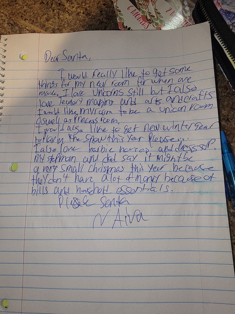 Hi I am a mom to 4 kiddos 1 boy 3 girls things have been rough for our family lately and we are seeking help with Christmas this year. There is a almost 9 year old boy who is obsessed with gaming and minecraft. There are 3 girls one is turning 8 in March 4 in April and 2 in July. The 8 year old girl is absolutely obsessed with unicorns and arts and crafts. The almost 4 year old is into gabby dollhouse super kitties as well as paw patrol. And for the baby she loves Ms Rachel as well as educational toys and teethers. The baby didn't write a list this year she would just really like winter gear like snowsuit and hats and gloves as well as new clothes. Size are 9-10y boy. 8-10y girl. 4t girl. As well as 18-24 month girl. https://www.amazon.com/hz/wishlist/ls/164CM7Y8LG4QJ?ref_=wl_share this is the link to the Xmas wishlist for all the kids. Thank you very much things have been rough can not get a job due to not being able to afford child care. My husband has a job but doesn't make much. Thank you for your help.